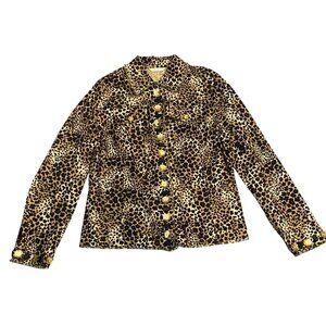Laura Ashley Leopard Print Jacket Gold Buttons Front Pockets Small