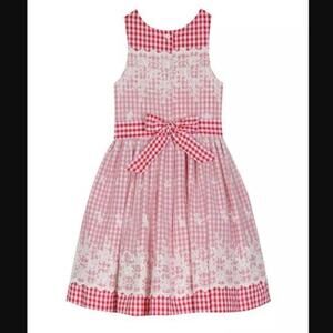 This Laura Ashley London Girl's Sleeveless Mixed Fabric Dress is perfect for your 12-month-old. Brand new with tags and from a smoke-free home, it features bold red and white colors.