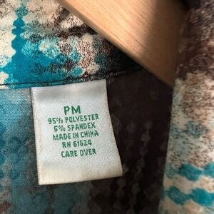 Laura Ashley Medium Full Zip 3/4 Sleeve Turquoise Brown multicolor Blouse mature