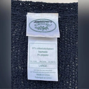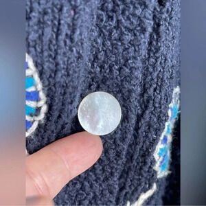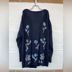 Laura Ashley Navy Blue Cardigan Sweater White Blue Embroidered Flowers Pockets L
