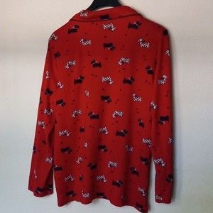 Cute knit material Laura Ashley all over Scottie dogs with bows and hearts print. Some dogs have cheetah print design. Size XL.