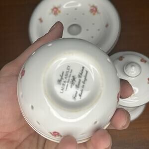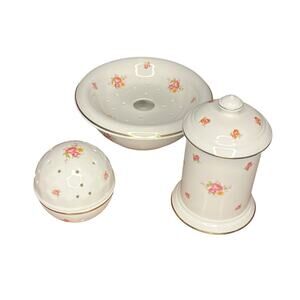 Laura Ashley Parfums Fine Bone China 3 Piece Bathroom Set Soap Dish Jar Floral