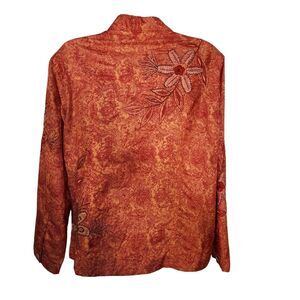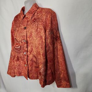 Laura Ashley Petite Womens Top PL Silk Orange Floral Embroidery Button Up Lined