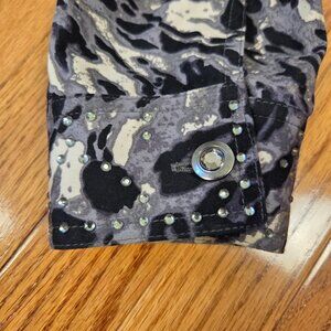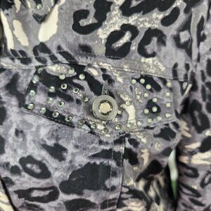 Rhinestone detail on collar, pockets, and cuffs