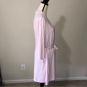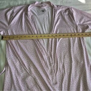 Very good pre-loved condition. Super soft poly spandex blend. Ties are attached. No pockets. See measurements in photos. Cute heart print.