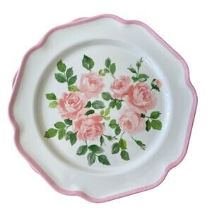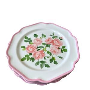 Laura Ashley Pink Rose Floral Melamine Salad Plates 8.5" Scalloped Set of 4 NEW