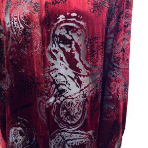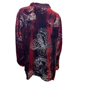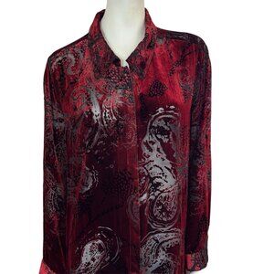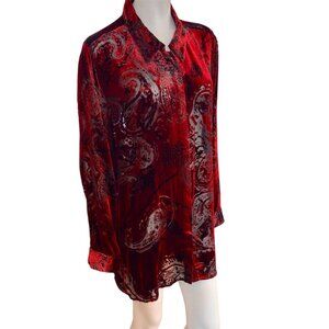 Laura Ashley Plus Size Velvet Paisley Burnout Silk Blend Button Up Tunic Blouse