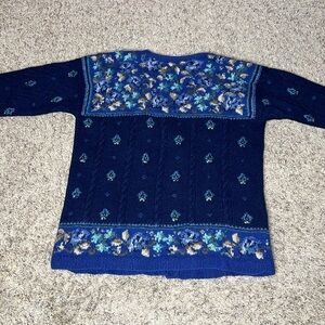Laura Ashley Pure New Wool 3/4 Length sleeve Button Down Cardigan Sweater Size Large