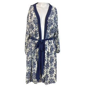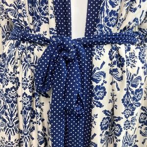 Laura Ashley Robe Womens Sz M Navy Blue Floral Lightweight Belted Kimono