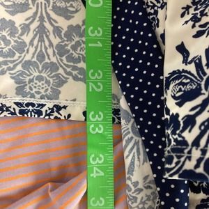 Color: Navy Blue and White Floral Print Polka Dot Trim and Waist Belt Long Sleeves Belted Waist Above Knee Length Stretch Lightweight