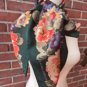 Laura Ashley , 100% Silk , floral, signed, hand-rolled scarf