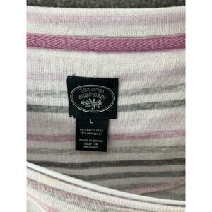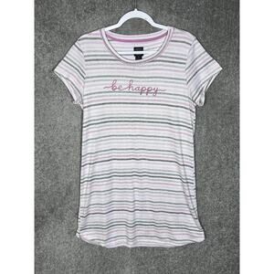 Laura Ashley Super Soft Striped BE HAPPY Sleep Shirt Womens Size Large Pink Gray