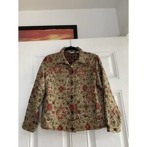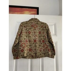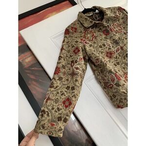 Laura Ashley Tapestry Jean Jacket Size Petite Medium Tan Red Floral Vintage