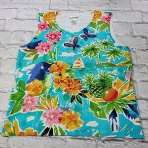 Laura Ashley Tropical Tank Top Turquoise Print size Large