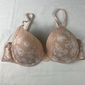 Laura Ashley Underwire Bra Size 38C Beige/Tan and White, Floral Print with Lace