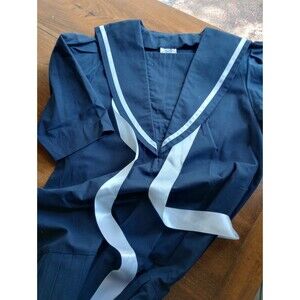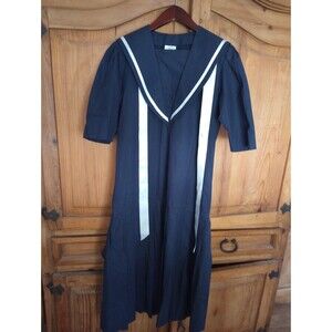 This Laura Ashley Vintage 80s Sailor Navy Blue Bow Tie Pleated Bib Nautical Dress from the United Kingdom exudes a classic nautical style with a touch of retro charm. Made of cotton, the dress features a sailor-inspired design with a bow tie and pleated bib, perfect for a wear-to-work occasion. The navy blue color adds a timeless elegance, while the vintage 1980s era adds a unique flair to the overall look. The UK size 12 ensures a comfortable and flattering fit for the modern woman looking to add a vintage touch to her wardrobe.