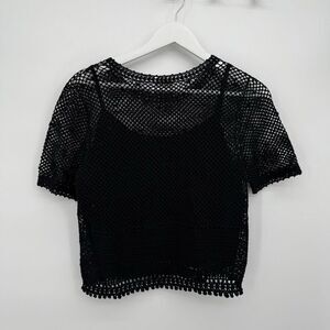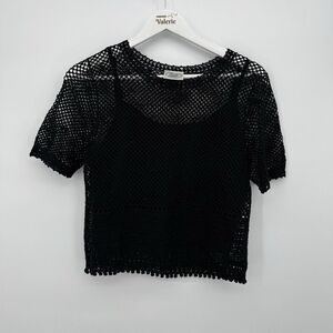 Laura Ashley Vintage 90s Black Knit Sheer Top Size Small