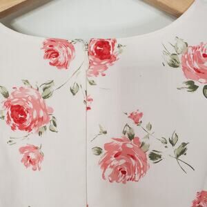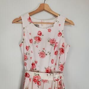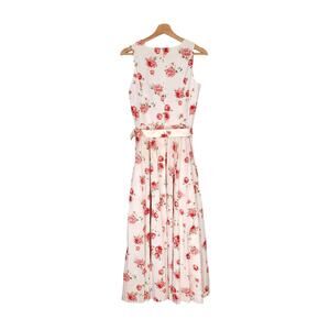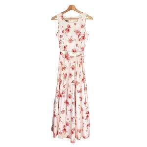 Laura Ashley Vintage 90s Floral Rose Belted Maxi Dress White Pink Cottage Size 8