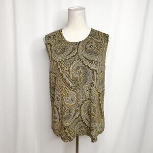 Laura Ashley Vintage Abstract Paisley Shirt Sleeveless Textured Women's XL 90s