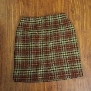 Vintage Laura Ashley skirt size 6 made in Great Britain 100% Wool Plaid Skirt Measures 17 3/4 in length 12 1/2 inch waist and is fully lined.