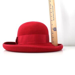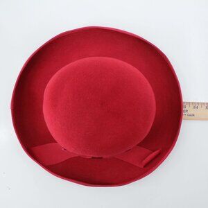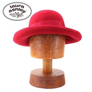 Laura Ashley Wide Brim Hat Magenta Wool Vintage Grosgrain Bow Great Britain 22.5