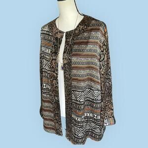 Laura Ashley Woman 100% Silk Mixed Animal Print Cardigan Top Plus 2X 16 18 Brown