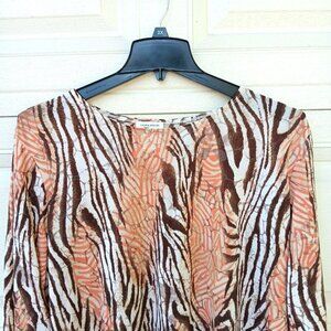 Laura Ashley Woman 3X Animal Print Blouse Zebra Tiger Stripe 34 Sleeve VTG Top