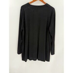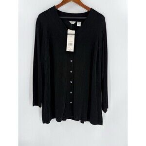 The Laura Ashley Woman Trip Ready Knits Traveler Packable Acetate Easy Care PLUS 1X is a versatile and stylish blouse perfect for the modern woman on the go. Made from easy-to-care-for acetate knit fabric, this V-neck top features a button closure and long sleeves for a classic look. With a relaxed fit and packable design, it is ideal for travel and can be worn in all seasons. The black color and solid pattern make it a timeless wardrobe staple with a touch of vintage charm from the Laura Ashley brand.