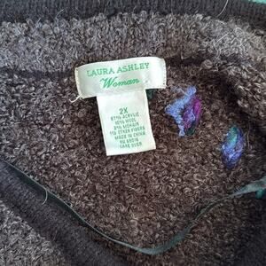 Laura Ashley Woman Wool Blend Cardigan Sweater Sz 2X Gray Snap Embroidery Artsy