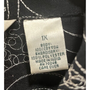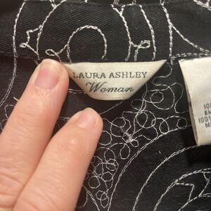 Laura Ashley Women's Black Jacket Embroidered White Spirals 1X Artsy Unique Rare