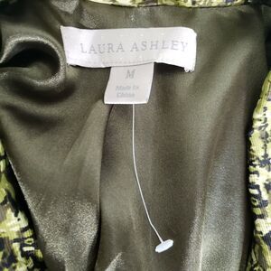 Laura Ashley Womens Blazer Jacket Size Medium Green Printed Snap Front Pockets