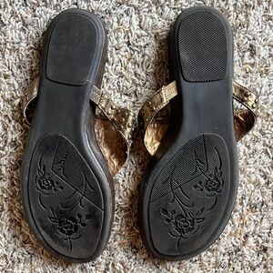 Laura Ashley Women's Brown and Gold Jeweled Sandals
