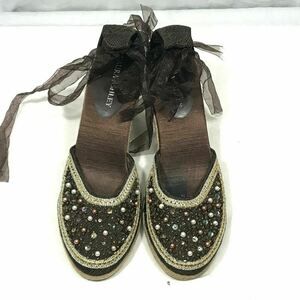 Laura Ashley Womens Heels 8M Bronze Brown Beaded Strappy Tie Wedges