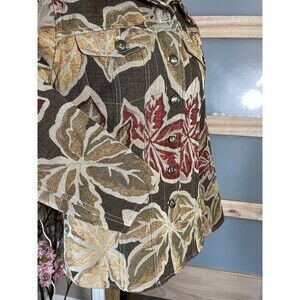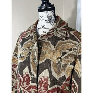 Laura Ashley Womens Jacket SIZE Medium Brown Floral Button Front Pockets Collar