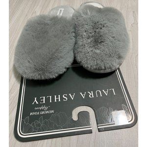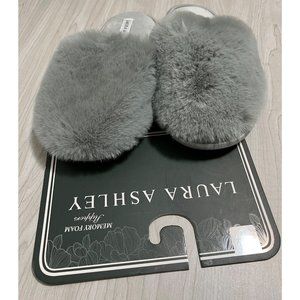 Laura Ashley Womens Plush Faux Rabbit Fur Memory Foam Slide Slippers NWT 5-6 S