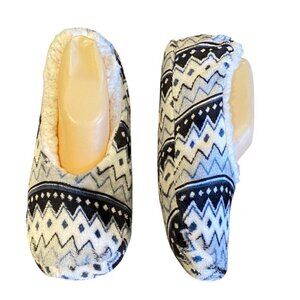 Laura Ashley by Ashko Fair Isle Fuzzy Slipper Socks w/ Grippers Non Slip L #70V