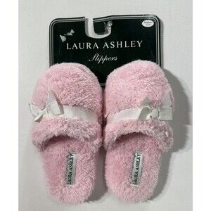 Laura Ashley girl's size 1-13 medium pink slip on slippers with bow