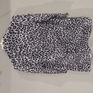Laura Ashley women's medium gray cheetah open front 3/4 length sleeve cardigan