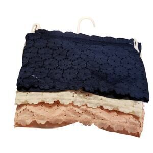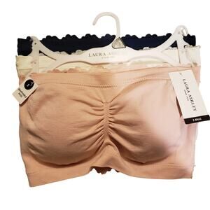 Laura Ashley Intimates pink blue and white 3pk padded wirefree lace back strapless bras S M L XL