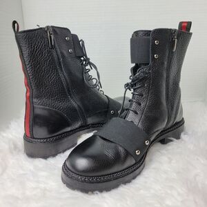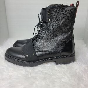 Laura Bellariva Women's Ankle Boots Size 8.6 Black Leather Elastic Lace Zip-Up