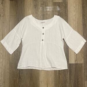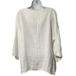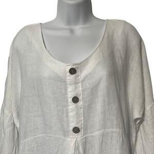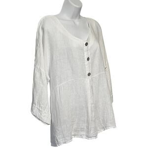 Laura Bianchi 100% Linen Blouse White Italy 3/4 Sleeve Minimalist Size L Beach
