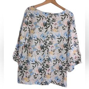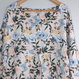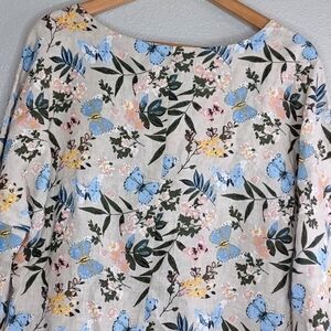Laura Bianchi 100% Linen Floral Butterfly Coastal Tunic Top.
