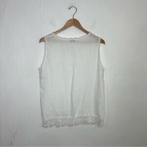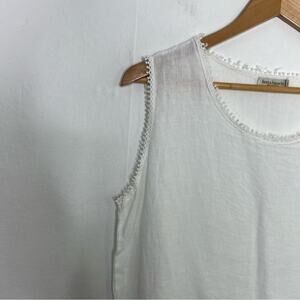 Laura Bianchi White Linen Eyelet Trim Sleeveless Blouse Top Italy Size Medium