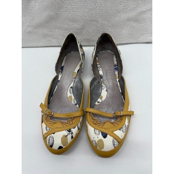Laura Brandon Anthropologie Leather Flat Shoe Floral Yellow Pattern Size 8.5