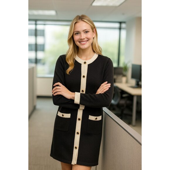 Laura By Alyzia Petites Black & Cream Button-Front Cardigan Dress With Pockets