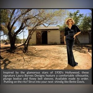 Laura Byrnes 1930s Style Gown black onyx Velvet Pinup Couture Fishtail Sz LARGE
