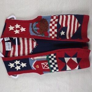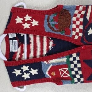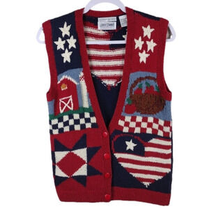 Laura Daniels Knitted By Hand Sleeveless Button Front Patriotic Sweater Vest