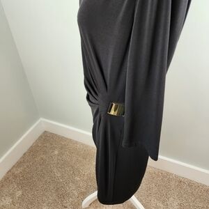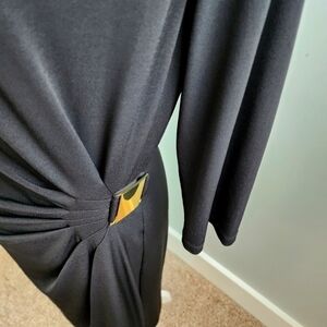 Laura Jeffries Ruched Wiggle Dress with Gold Buckle Detail Stretch Size 12 Black