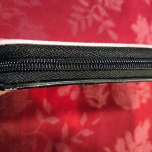 This large wallet is the size of a clutch purse. It has multiple card slots, a coin pouch, check book holders, a pen holder and much more! Since it is used, there is some wear on the leather exterior, as pictured above. We've included pictures from multiple angles to show these imperfections and details of the wallet. Although, because of these flaws we've reduced the price even further! Making this an even better deal for you!