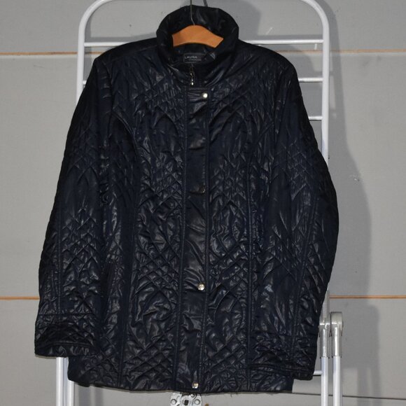 Lightly padded jacket, deep navy blue, timeless look in a diamond pattern.